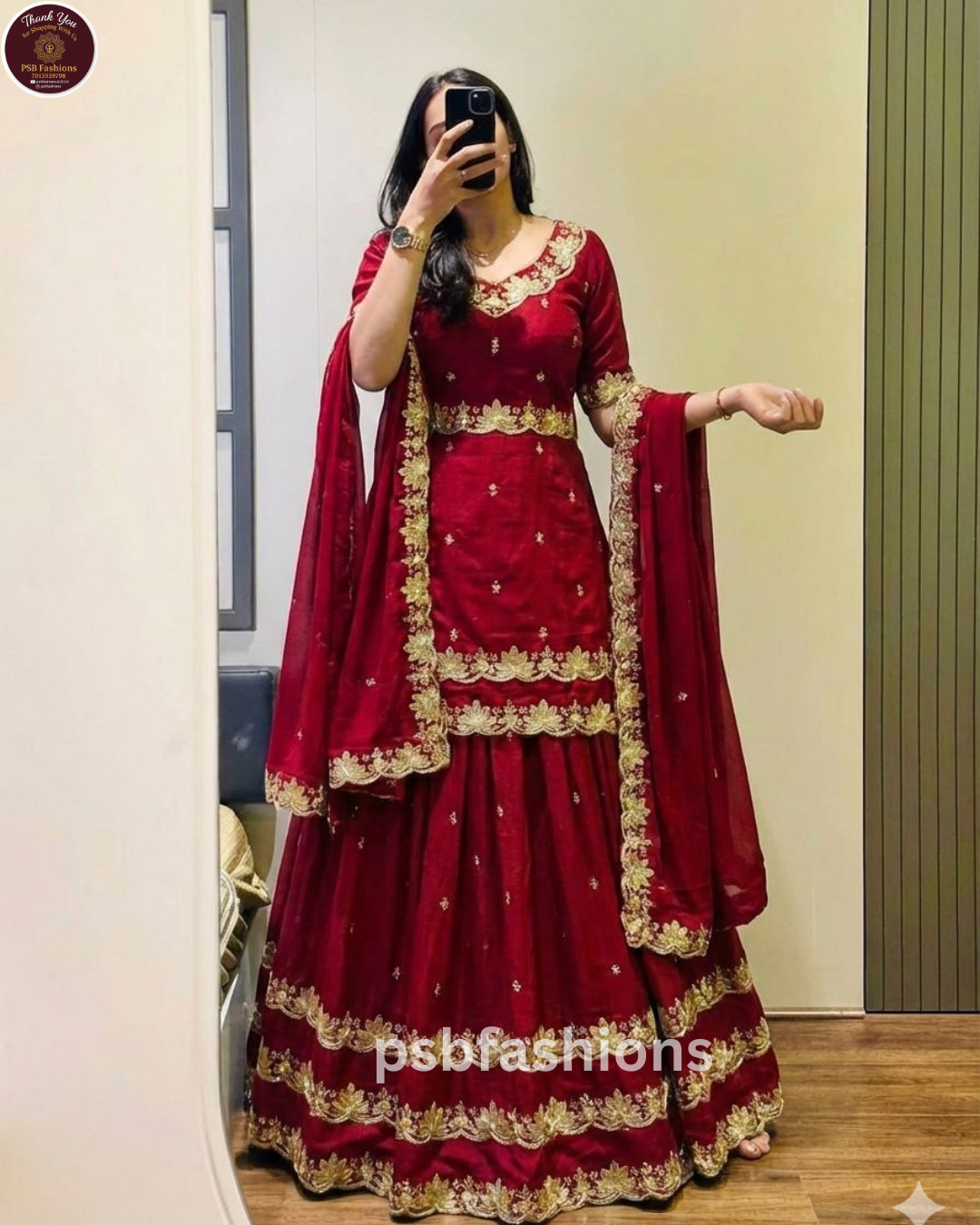 Creation is Launching Wedding wear Lehenga Choli 👗💌 👗Choli👗 Fabric:- Chinon silk Work:- Thread & paip Sequence Work Inner:- Micro Cotton Size:- M Upto L Margin XL upto 2xl Margin (Fully Stitched) 👗Lehenga👗 Fabric:- chinon Work:- paip Sequence Work Inner:- Micro Cotton Flair:- 3.5 Meter Length:- 44 (Fully Stitched) Weight:- 1kg 👗Dupatta👗 Fabric:-* Chinon silk […]