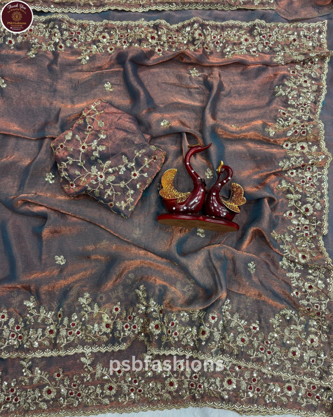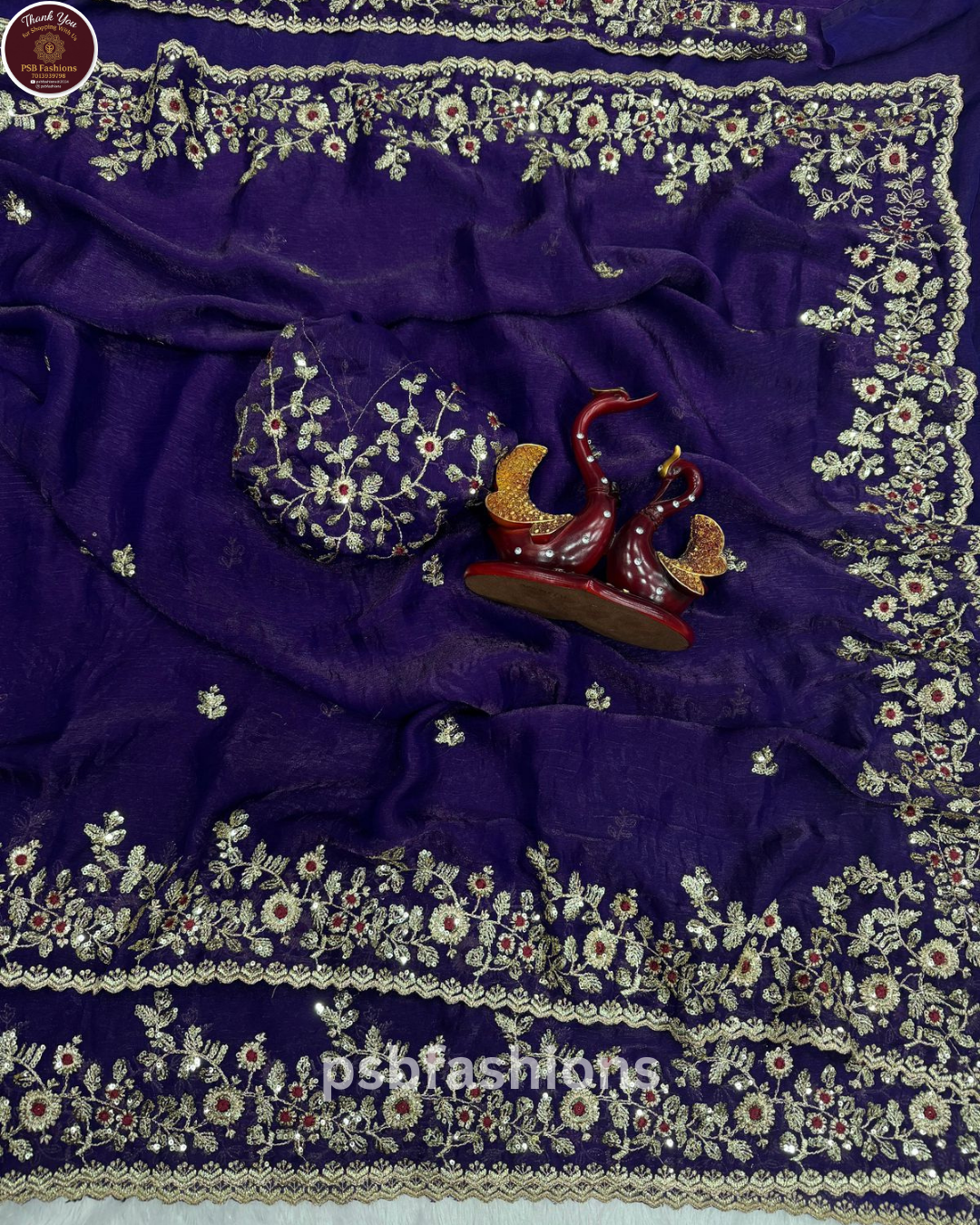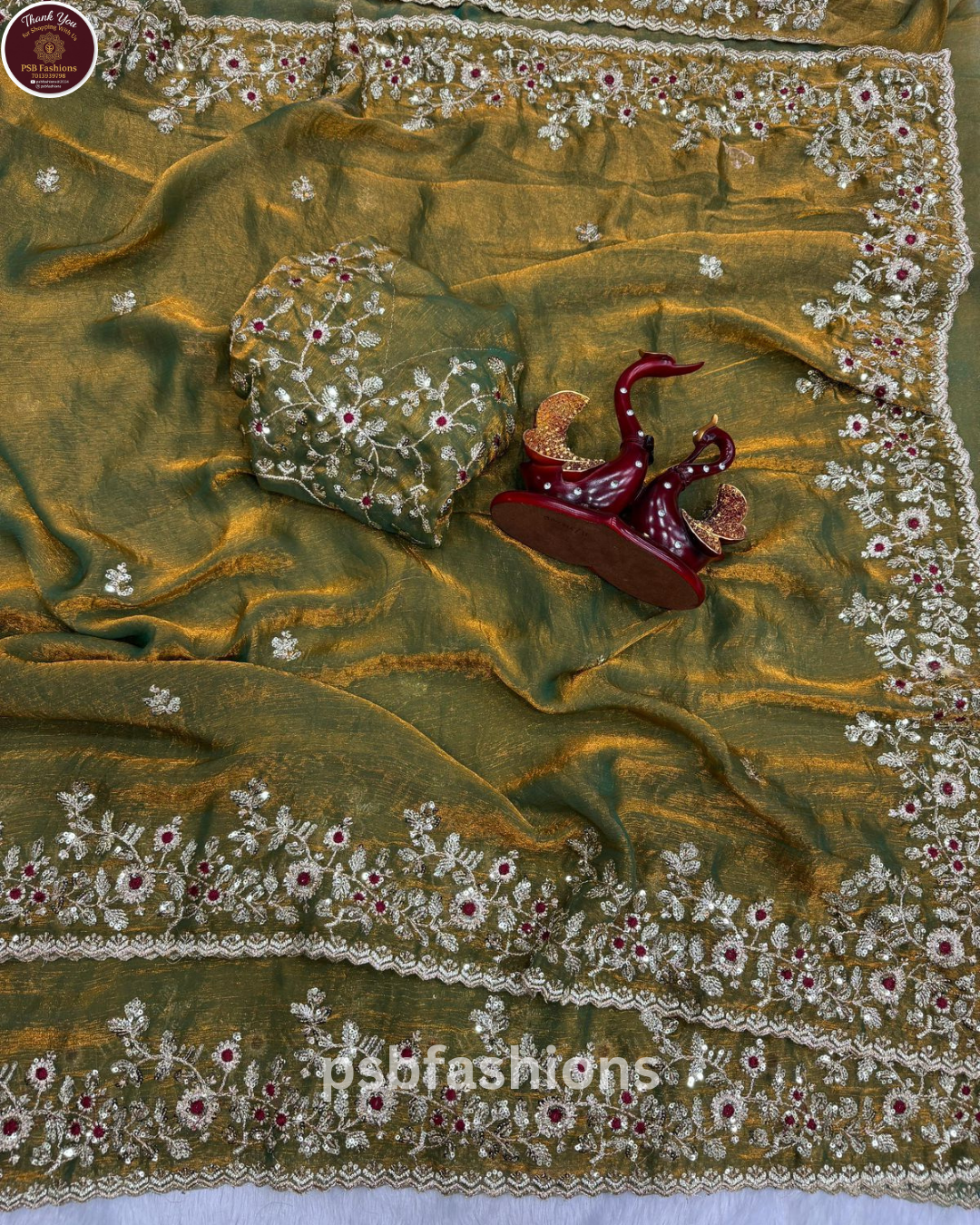 Crush space silk saree with beautiful embroidery work touch up of sequence and unstitch running blouse with work