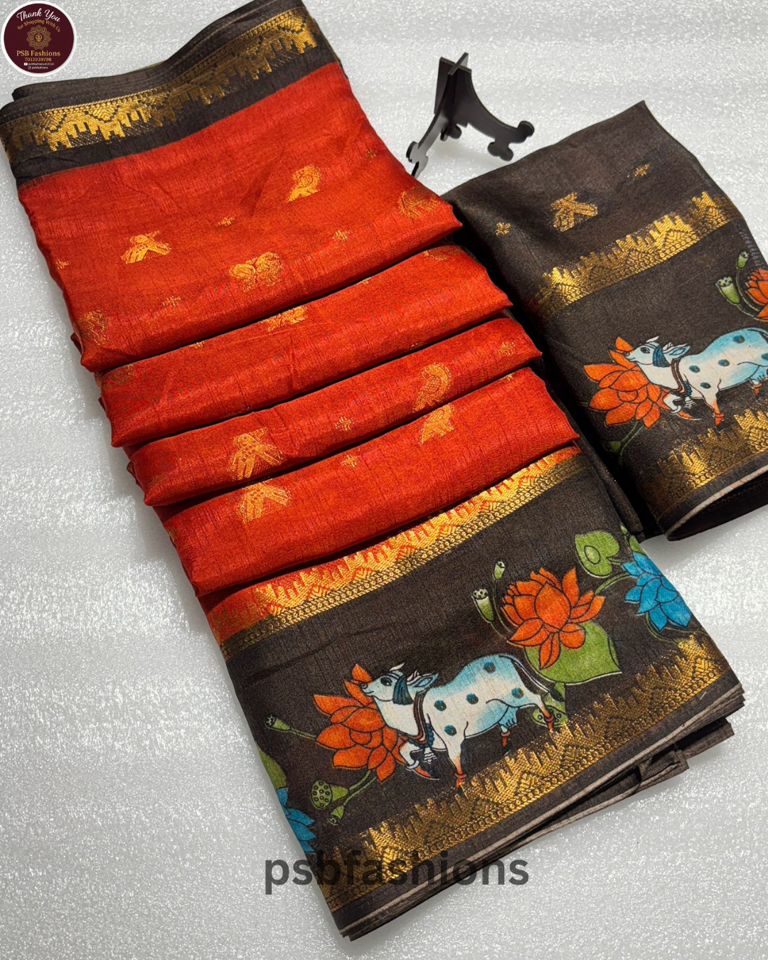 New launch Tranding saree – Super Hit Dola Silk Premium Saree – Pure Dola Silk with Jaqurd Border (same as original border only) – Running Blouse same as photo (original border) – Brand Original Saree – Total colors: 6 –